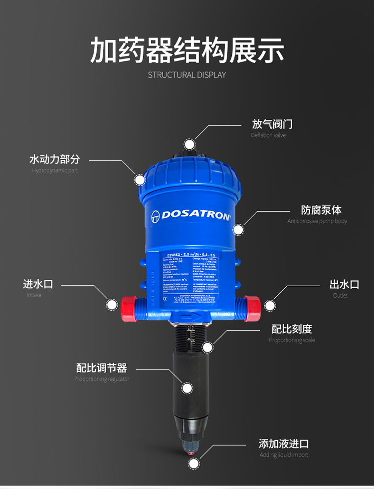 河南新瑞佳實業(yè)有限公司代理法國DOSATRON(多仕創(chuàng)/多壽/多薩同)水力比例加藥泵/多壽加藥器/投加泵,水力比例混合加藥泵。