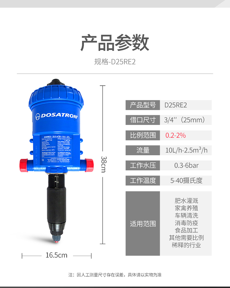 法國原裝進(jìn)口DOSATRON品牌/多壽品牌水動力比例加藥器/水力比例稀釋器D25RE2參數(shù):