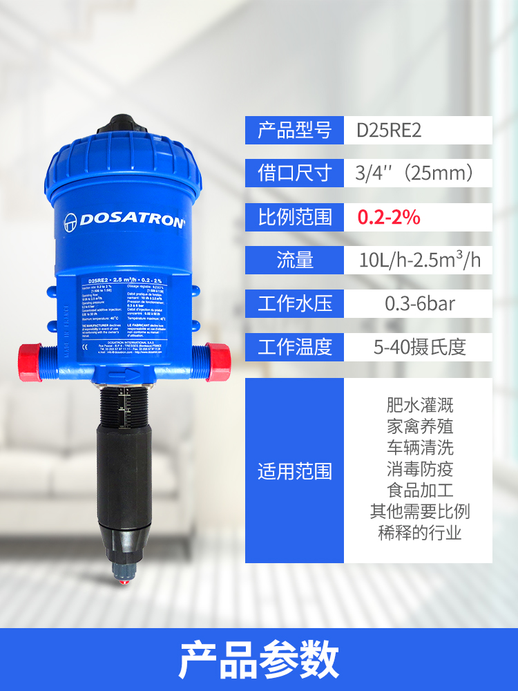 法國原裝進(jìn)口DOSATRON品牌/多壽品牌水動力比例加藥器/水力比例稀釋器D25RE2應(yīng)用場合